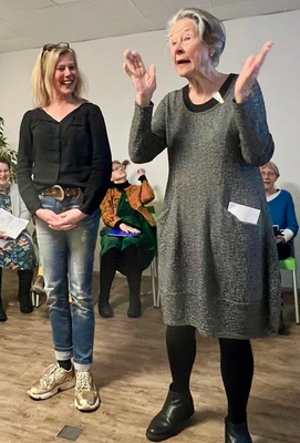 Im Sommer 2024 war ich Teilnehmerin der Meisterklasse Lyrik in der Schwabenakademie Kloster Irsee. Sie wurde geleitet vom Lyriker Arne Rautenberg, dessen Werke ich über alles schätze und mag. Zum Abschluss habe ich vor rund 300 Menschen Ausschnitte aus meinem aktuellen Lyrik-Projekt zum Thema Brustkrebs präsentiert (s. Bild links, mit der Künstlerin Anke Bär). An dem Projekt arbeite ich weiterhin intensiv. Die Ergebnisse waren u.a. im März 2025 bei einer Lyriklesung mit Musik in der Bremer Krebsgesellschaft zu sehen (s. Bilder unten, u.a. mit Senta Bonneval, Leiterin der Schreibwerkstatt).